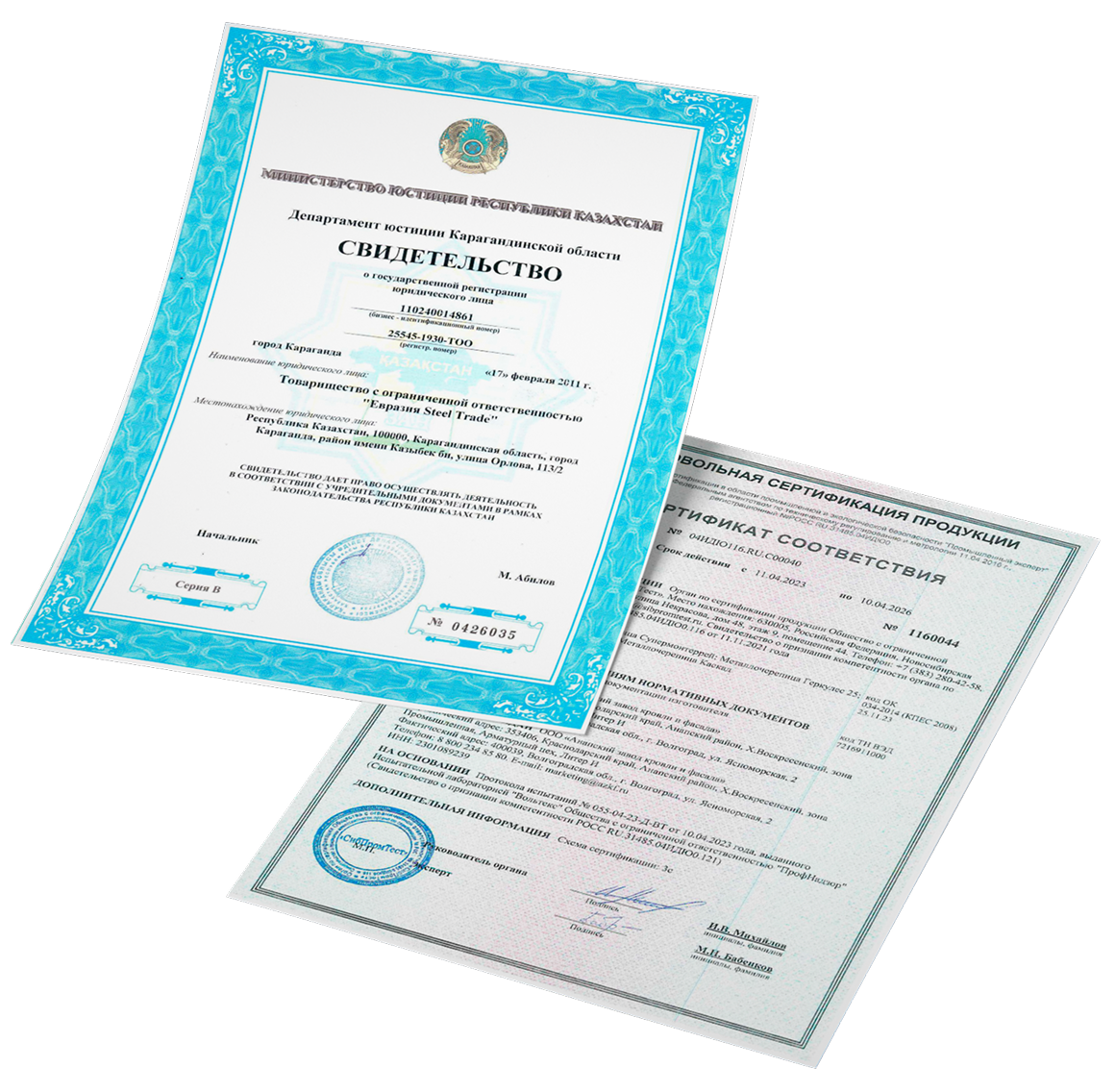 Сертификаты на продукцию и сырье